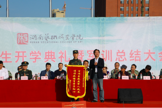 王章华为军训团、军训营授旗。