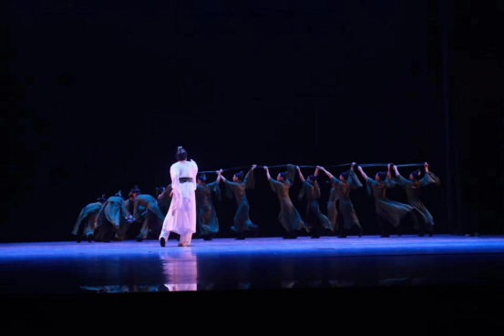男子群舞《求索》以屈原为主角,以舞代述,以天问之问向未来,体现爱国忧民、自强不息、求真笃学的“求索”精神,化为一种风骨滋养后人,生生不息,砥砺奋进。“路漫漫其修远兮,吾将上下而求索。”滔滔汩罗江水悠悠西去,道不尽远古怀贤之声。